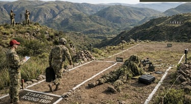 La Fase de Estrés (Pre-Tiro): Antes de poder tocar su réplica, el operador debe completar un ejercicio físico diseñado para elevar el ritmo cardíaco. (Ejemplo logístico: Transportar una carga de 20kg -mochila/bidón- trotando 30 metros -ida y vuelta en un carril marcado-). El Juez Nivel C verifica la finalización correcta del ejercicio.