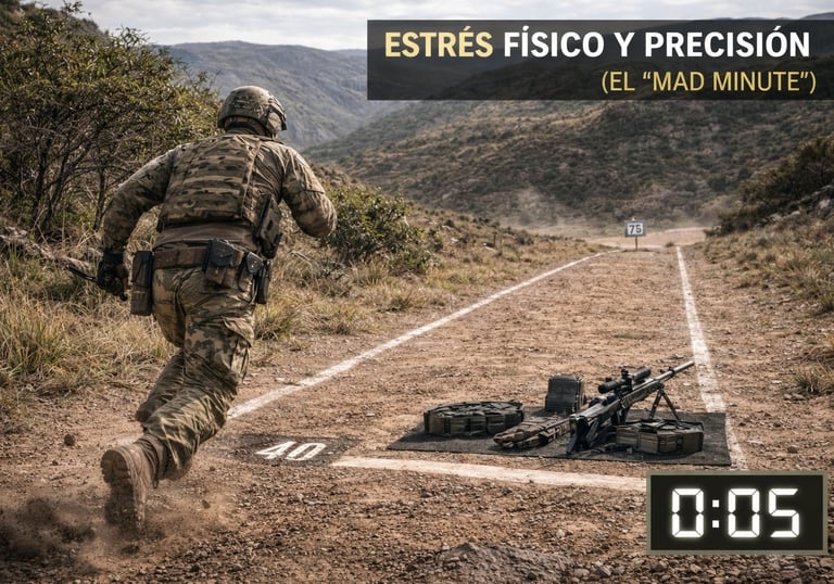 Sprint explosivo de 40 metros seguido del máximo volumen de fuego certero posible sobre un blanco a 75 metros en 60 segundos.
